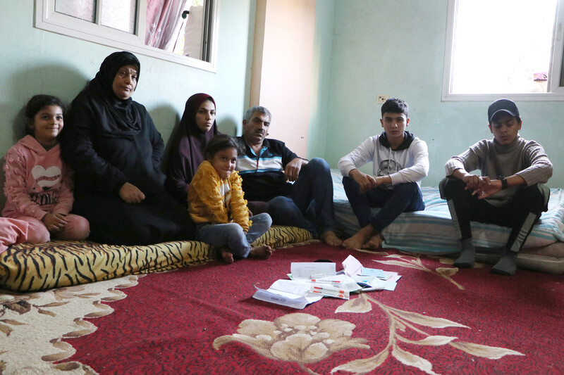 The Jarour family at their Gaza City home on 20 November, which marks International Children’s Day. Four of the family’s seven children have diabetes and it is difficult to provide treatment for them under Gaza’s dire economic conditions.