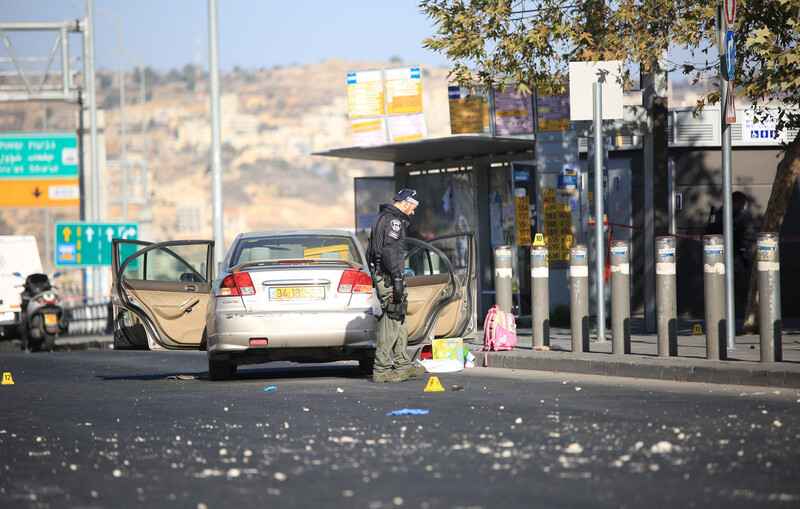 An Israeli Border Police officer at the scene of an explosion at a bus stop in Jerusalem on 23 November. A 16-year-old was killed in the bombing and a man died from his injuries days later.