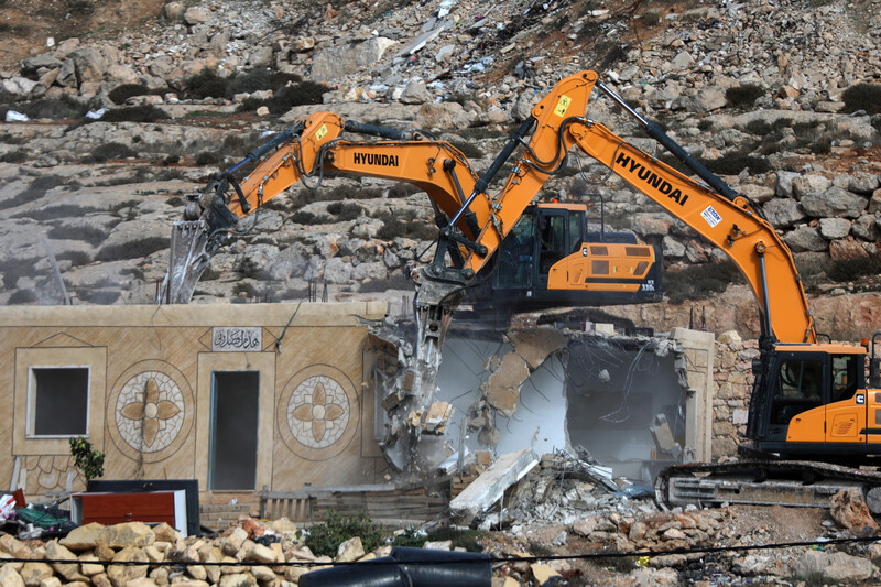 The Israeli military uses excavators to destroy two Palestinian houses in the Jabal Johar area of the West Bank city of Hebron, near the Kiryat Arba Israeli settlement, on 28 November.