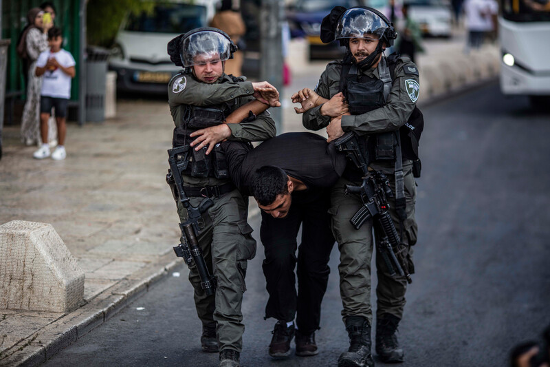 Israeli police arrest a Palestinian following a parade organized to mark Mawlid, the birthday of Islam’s Prophet Muhammad, on 8 October.