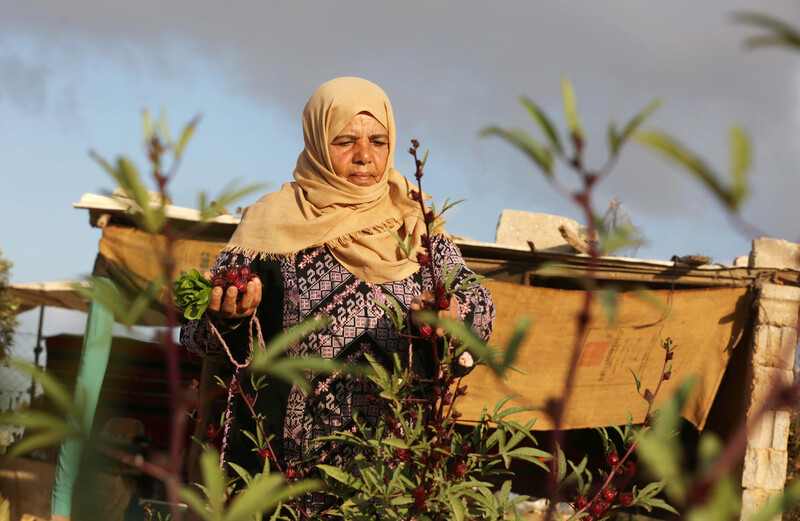 Amune Abu Rajila works at her field in Khan Younis, southern Gaza Strip, on 15 October, which marks the International Day of Rural Women.