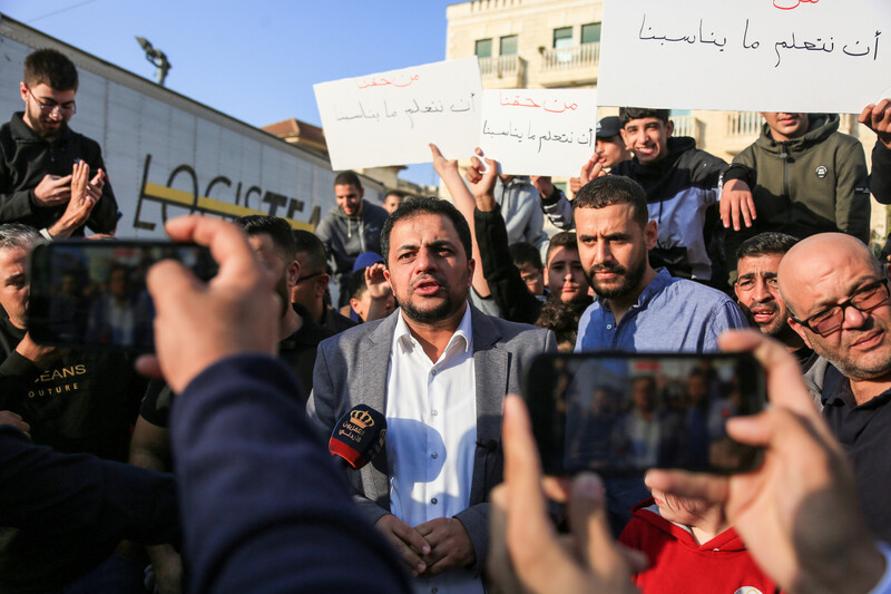 Palestinian parents of students attending al-Iman school in the East Jerusalem neighborhood of Beit Hanina protest against Israeli attempts to impose a new curriculum, 27 October. During September, some 150 schools in East Jerusalem went on strike to protest the introduction of Israeli textbooks with a Zionist narrative.