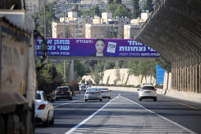 Campaign banners are seen in Jerusalem on 27 October, days ahead of Israel’s fifth round of general elections in less than four years.
