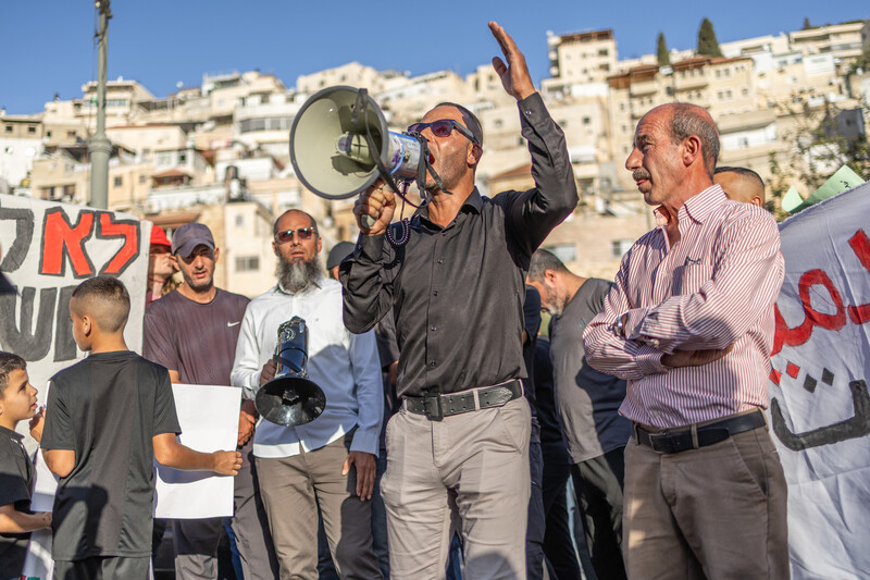 Residents of the Silwan neighborhood in East Jerusalem and solidarity activists protest Israel’s ethnic cleansing campaign in the area on 11 October.