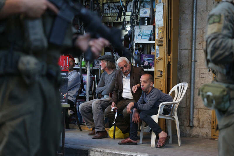 An Israeli soldier attacks a journalist who had been documenting a military raid on the Old City of Hebron in the West Bank, 4 October. Troops attacked and aimed their guns directly at photographers and journalists and blocked Palestinians from reaching their homes.