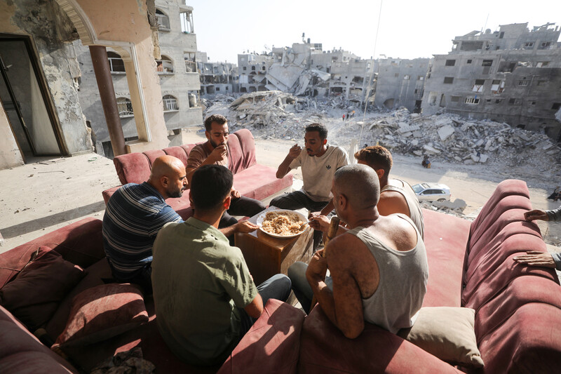 Palestinians try to survive after returning to their homes in ruined Jabaliya, northern Gaza, 26 October.
