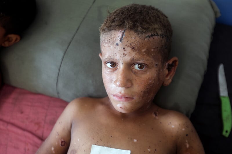 A child is treated at Al-Shifa Hospital in Gaza City on 23 October after sustaining severe injuries following an explosion caused by unexploded ordnance.
