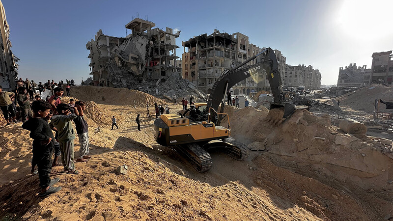 An estimated 10,000 bodies remain under the rubble of destroyed buildings, according to authorities in Gaza. The Palestinian Civil Defense says its teams lack heavy and specialized equipment and face grave risk from unexploded ordnance and decomposed bodies, all of which undermine recovery efforts.