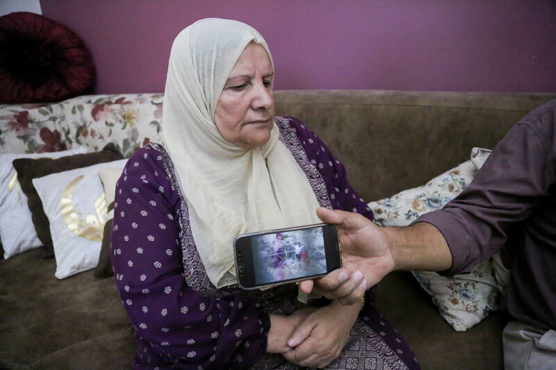 Rasmiya Shakarna’s son-in-law Ahmed shows a video of the 70-year-old woman being brutally attacked by settlers two days earlier while harvesting olives in Nahalin, west of the West Bank city of Bethlehem, 26 October.