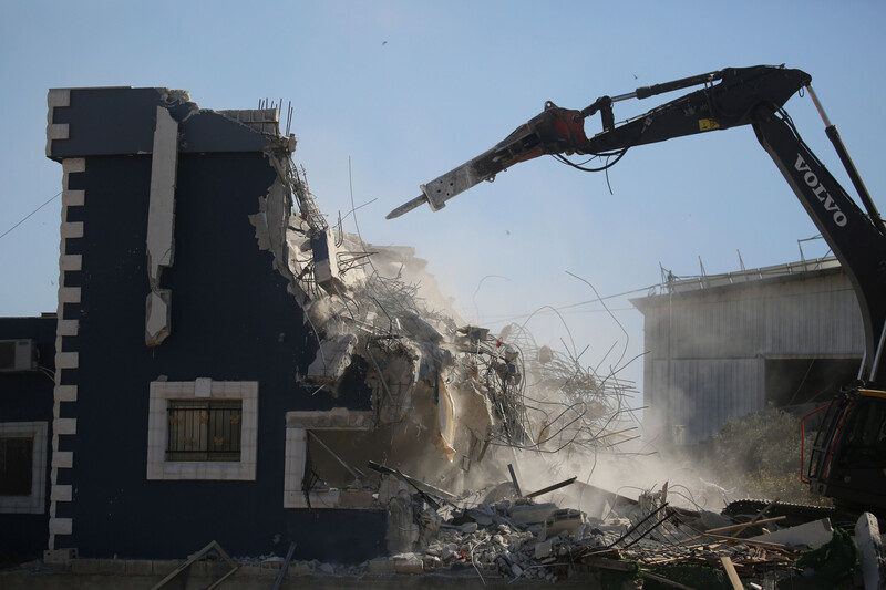 The Israeli military demolishes a Palestinian home on the pretext that it was built without a permit in the village of al-Funduq, near the West Bank city of Qalqilya, 27 October.
