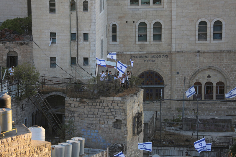 Israeli settlers, backed by Israeli colonial forces, seize a 400-square-meter Palestinian home in the Old City of Hebron in the West Bank, 2 September. The UN said that Palestinians in the area fear that their movement could be restricted even further.