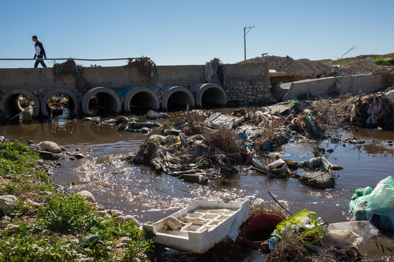 Sewage flows through Bir Hadaj in February 2014. Despite being recognized by the Israeli government, the village lacks basic water, electricity and sanitation infrastructure.