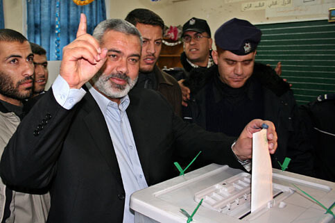 Ismail Haniya, Hamas chief candidate, casts his vote at a polling station during the Parliamentary elections in Gaza City January 25, 2006. (MAANnews/Wesam Saleh)