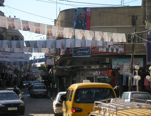 Posters of Mahmoud Abbas (‘Abu Mazen’), Mustafa Barghouti, Taysir Khaled, and other president candidates filled the streets of Khan Yunis in Gaza in January 2005. (Arjan El Fassed)