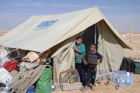 Palestinian refugees stranded at the border between Iraq and Syria. (CPT)