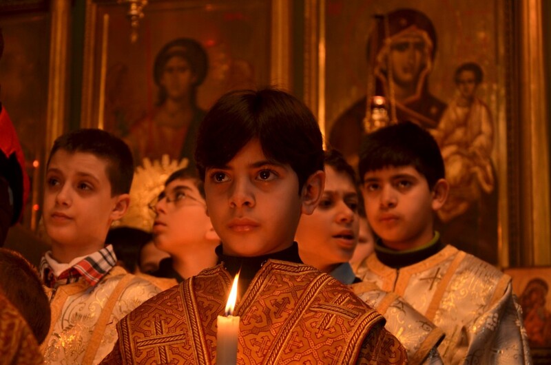 Children participate in Christmas services at the Church of Saint Porphyrius in Gaza City.