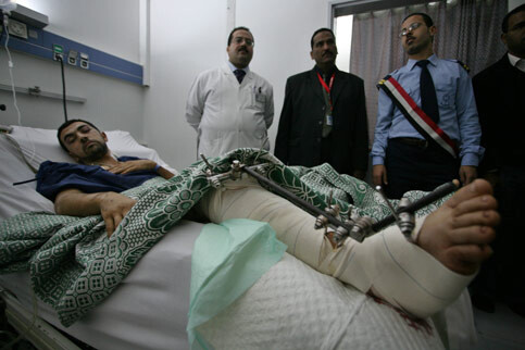A Palestinian injured by an Israeli air strike on the Gaza Strip is treated at the Nasser Hospital in Cairo, Egypt, 30 December 2008. (Wissam Nassar/MaanImages)