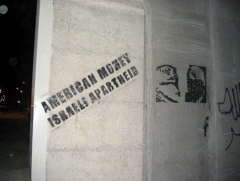 This Photo of the Day was taken by Marcy Newman, of a section of Israel’s Wall near Bethlehem. On the right, someone has stenciled part of BNN’s header showing Ariel Sharon and Star Wars character Jabba the Hutt!