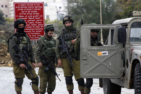 Israeli soldiers detain four Palestinians, including a child, on their way home after a vigil commemorating the Ibrahimi mosque massacre.