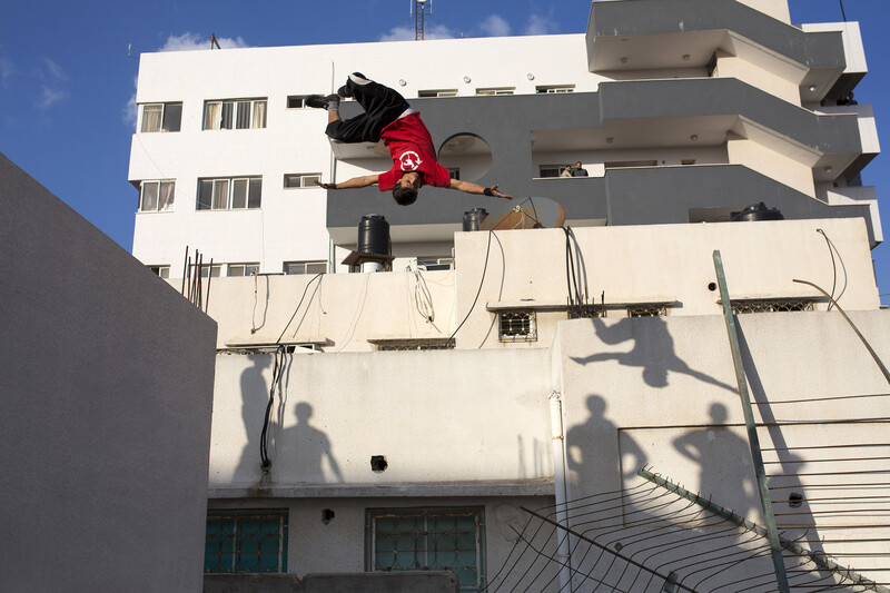 “Feeling free is the best thing about parkour. Everything is closed here for us. In Gaza, with or without war, the situation is so bad. Parkour is my oxygen,” says a smiling 18-year-old Hamza Shalan. A first-year university student, two of his brothers have been killed — one during Israel’s assault in 2008 and the other in 2011.