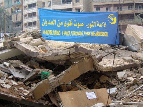 Thus read a sign on the rubble of a leveled building in south Beirut. The building was hit by a bunker buster on 13 of July 2006, the second day of the war, when the Israeli Air Force hit the Nour Radio Station that used to operate from the Amiriyyah building.