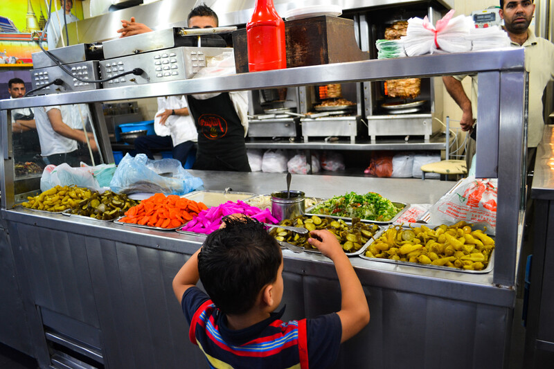 Pickled condiments on display at al-Thailandi restaurant in the Rimal district of Gaza City.