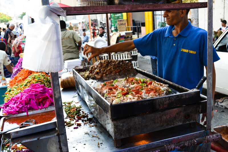 A street vendor prepares shawarma sandwiches at the Friday market in Gaza City.
