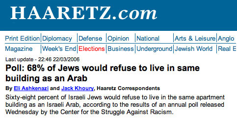 “Racism is becoming mainstream. When people talk about transfer or about Jews as a demographic time-bomb, no one raises their voice against such statements. This is a worrisome phenomenon,” Bechari Houda, director of the Center for the Struggle Against Racism, said on Tuesday. The report covered the year 2005 and the center will, in the future, present monthly and bi-annual polls.