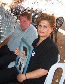 Rami Fadayel’s parents, Rizik and Mona, at the Palestinian Prisoners’ Solidarity Tent in Ramallah, 27 August 2004. (Photo: Rima Merriman)