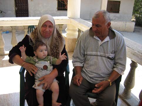 Umm Mohammed, Sleiman with Mohammed’s son, one of their grandchildren (Photo: Rima Merriman)