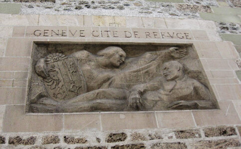 Written in French, “Geneva City of Refuge” — except for Palestinians? (Isabelle Humphries)