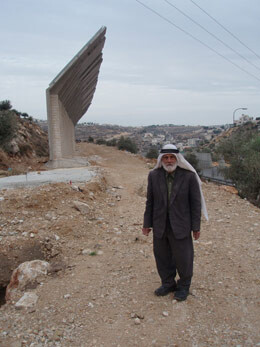 Abu Salim knew all the marks and features of his land, but the bypass road and the wall destroyed it and cut off parts of it on other side of the wall. Hand in hand with Abu Salim we try to cross the bypass road. Wearing his characteristic clothes it is not difficult to identify Abu Salim as Palestinian. Many cars and trucks driven by Jewish settlers honk, as if to say, “you have no right to be here!” How does a landowner not have the right to be on his land? It is Israel that does not have the right to build the bypass road and the wall on Abu Salim’s land!
