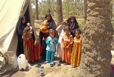 An Iraqi family displaced by war in a camp outside Baghdad. (IRIN)