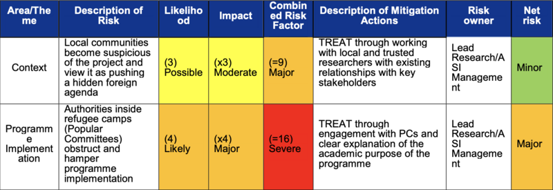 The consortium forecast that “local communities [becoming] suspicious of the project and [viewing] it as pushing a hidden foreign agenda,” and Popular Committees working to “obstruct and hamper” the program, were both major risks.