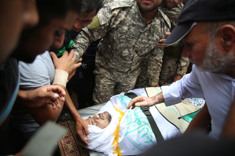 Nidal al-Jaafari, killed in a bombing at the boundary with Egypt, is mourned during his funeral.