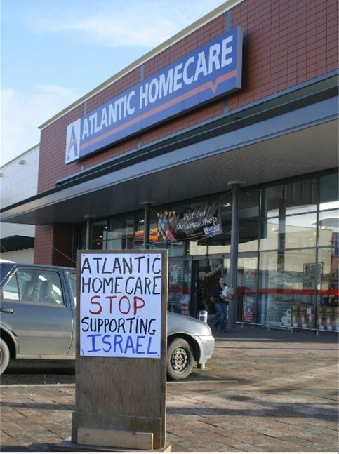 Ireland-Palestine Solidarity Campaign members ended a picket of an Atlantic Homecare store in Limerick after managers removed all Israeli products from the sales floor. (IPSC)