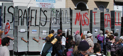 During a protest against the occupation of Palestine and Iraq, participants carried a mock wall stating “Israel’s wall must fall” (Photo: Anonymous)