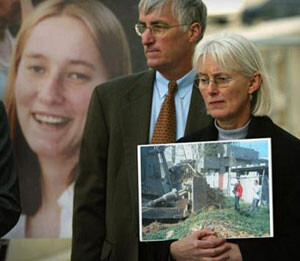 (Washington D.C., 19 March 2003) “Our daughter Rachel, a volunteer with the International Solidarity Movement in the Occupied Territories, died Sunday in the Gaza Strip while courageously trying to prevent the demolition of a Palestinian home.