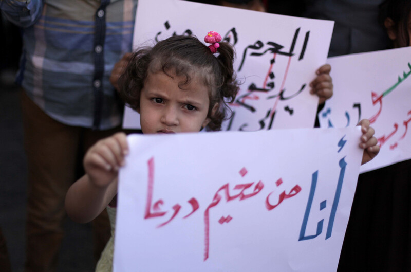 Palestinians who fled Syria protest in Gaza City in October 2013.