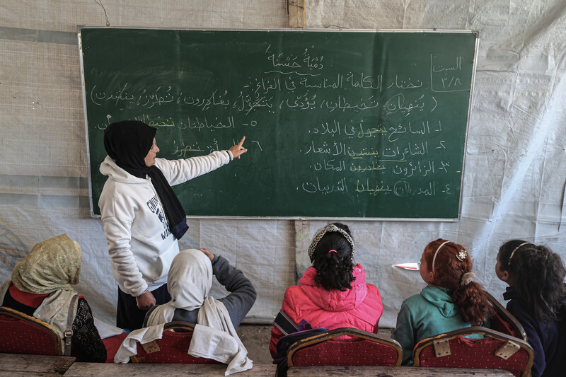 An educational tent in Jabaliya, northern Gaza.