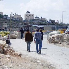 I walked all the way up to the next junction. The road leads on one way to Beit Hanina and the other to the settlements of Neve Yacov and Pisgat Zeev. For Palestinians, roads and transportation has become one of the most visible signs of the ever-increasing apartheid. The cars were not waiting because of a red light, an accident, or because of rush hour. The cars were waiting for another checkpoint. Each car was separately checked. One by one, with an average of one car every 5 to 10 minutes could pass. I walked passing this new checkpoint and waited for the first service taxi to pass.