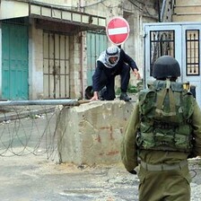 An Israeli army barricade in the center of Hebron (AEF, 2001)