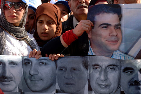 Women hold photographs of assassinated Lebanese personalities at the mass funeral of Lebanese minister Pierre Gemayel, Beirut, 23 November 2006. (Dina Debbas/IRIN)