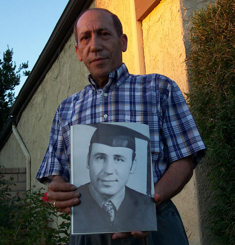 Sami Odeh stands with a photo of his slain brother in 2005, 20 years after Alex Odeh’s assassination.