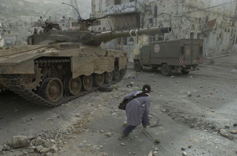 Palestinian girl taking cover in Nablus as Israeli tanks block the streets (Photo: Nasser Ishtayeh)