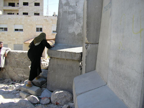 Palestinian woman trying to pass around Israel’s Apartheid Wall in Abu Dis (Arjan El Fassed)