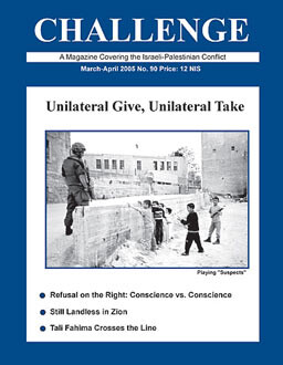 CHALLENGE is a bi-monthly leftist magazine focusing on the Israeli-Palestinian conflict within a global context. Published in Jaffa by Arabs and Jews, it features political analysis, investigative reporting, interviews, eye-witness reports, gender studies, arts, and more. This article first appeared in Challenge #90, March-April 2005 and is reprinted with permission.