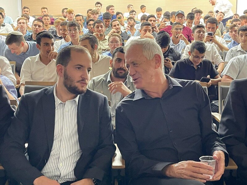Netzah Yehuda Association CEO Yossi Levi, left, posted this photo of himself with Israeli defense minister Benny Gantz in September. (via Twitter)