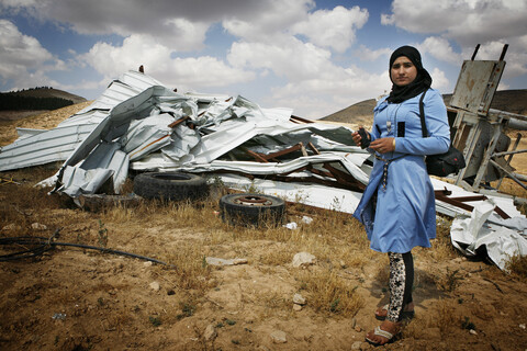 Fatima hangs clothes to dry in September 2010. Before the demolition that year, al-Araqib was home to three dozen families living in large tents or homes constructed with wood or plaster.