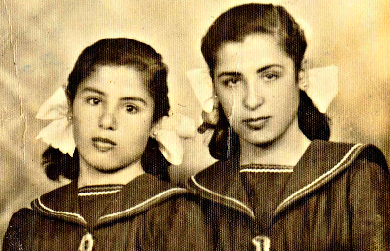The author’s grandmother, Fatima Radwan (right) and her younger sister Sakeena at the Dar al-Tifl school four years after the Deir Yassin massacre.